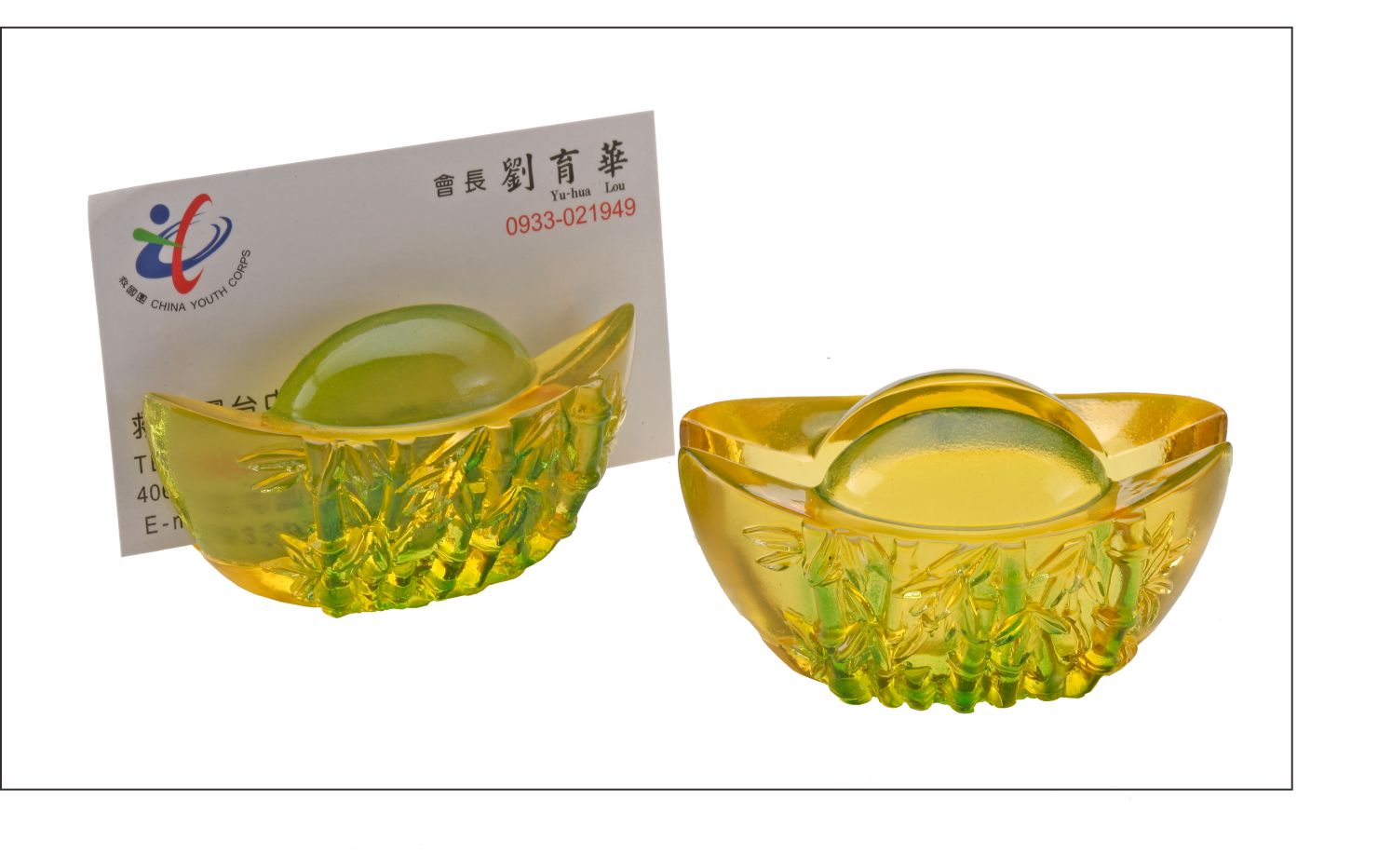 節節高升~水琉璃元寶名片座